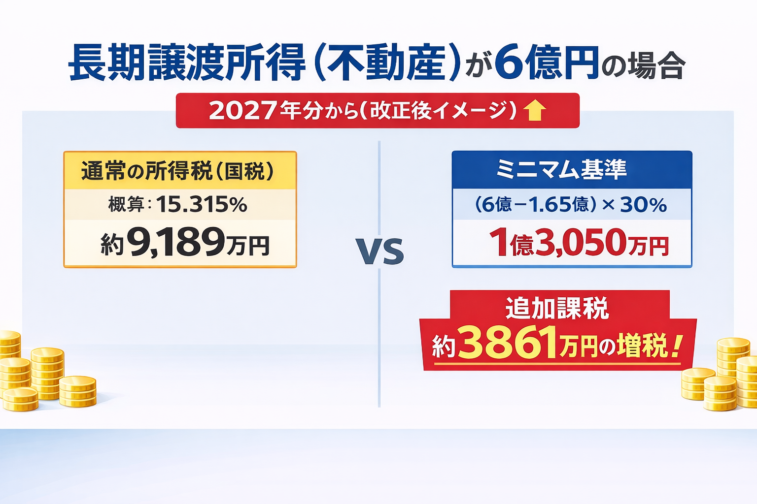 ➡️ この単純化した前提では、国税ベースで約3,861万円の“追加課税”が発生し得るというイメージになります。