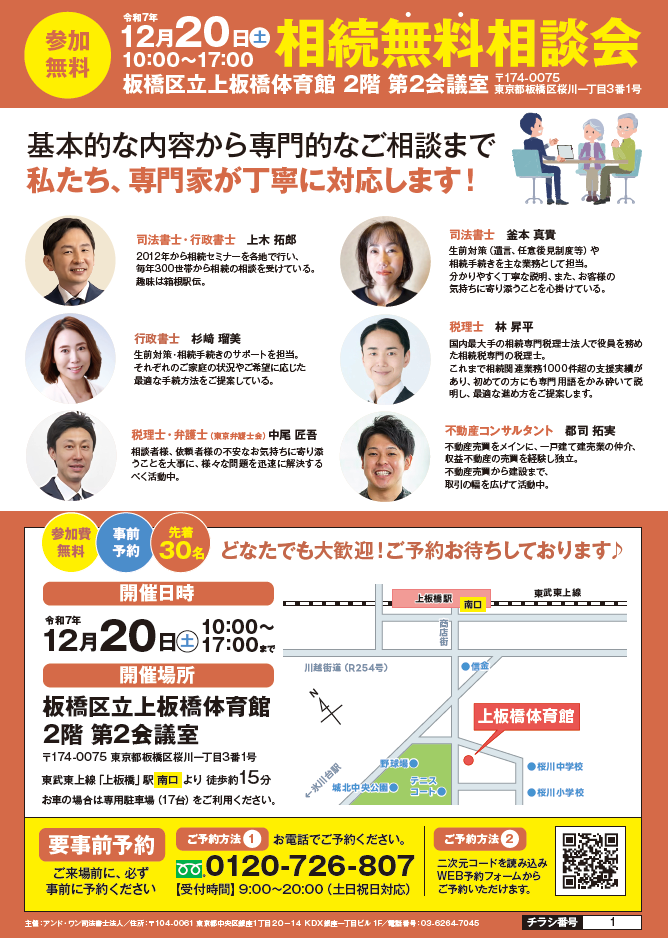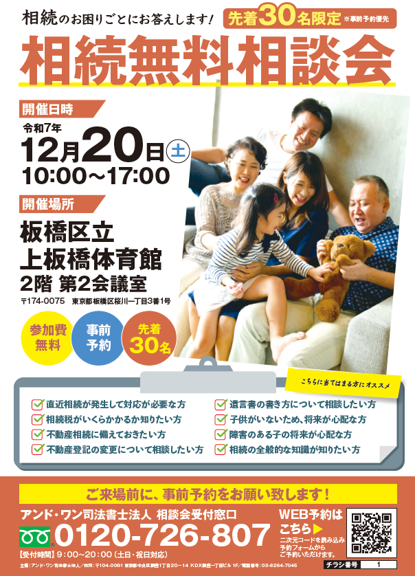 相続に関する不安や疑問を、専門家に無料で相談できる「相続無料相談会」が開催されます。当日、相続税のご相談担当(税理士)として参加予定です。